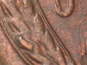 | Die Gouge West of OF | Die Crack lower Right Wheat to Rim | |||||||||||||||||||||||||||||||||