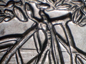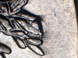 | Die Chip Northeast of JF Initials | Die Chip at lower Right Leaves | |||||||||||||||||