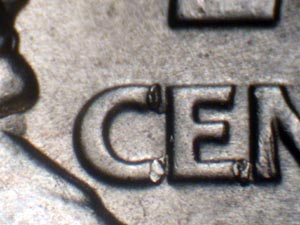 Lower Hair | Die Chips between CEN of CENTS | |||||||||||||||||||||