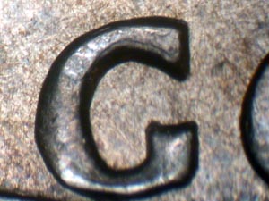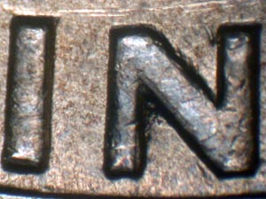 | IN | Die Scratches between IN GOD | G of GOD | ||||||||||||||||