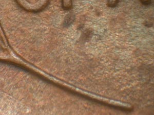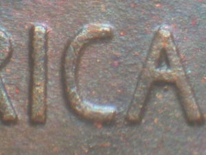 UNITED, F of OF, TA of STATES, and M of AMERICA. Reported by: Jay Painter Comments: Reverse is RDV-004 (Deep cut N, no V. D. B.) / RDV-003 (Shallow cut N, no V. D. B). This is a generic listing for coins with a single die state difference between the Reverse and Obverse dies. |