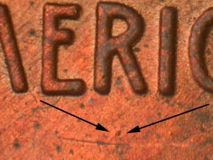 | Left Wheat Tip | Die Gouge Dot below R of AMERICA | Right Wheat Tip | ||||||||||||||||