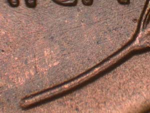Description: Very light triple spread on Left wheat ear with extra thickness on E PLURIBUS UNUM and both wheat ears and stems. Reported by: James Wiles Comments: Obverse is LISTED as DDO-005. |