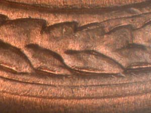 Description: Extreme extra thickness on all lettering and wheat ears with separation on stems. Reported by: Delma K. Romines Comments: |