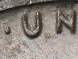 Description: Medium extra thickness on E PLURIBUS UNUM, dots, both wheat ears and stems, and AMERICA. Reported by: Delma K. Romines Comments: |
