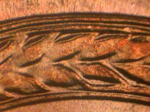 Description: Medium spread on lower Left wheat ear and stem with light division lines on U of UNITED and O of OF. Reported by: Jose Cortez Comments: |