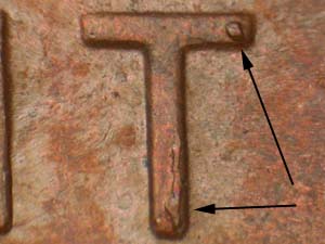 | Left Wheat Tip | Die Chips of T of CENT | Right Wheat Tip | ||||||||||||||||