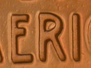 Description: Light spread on E PLURIBUS UNUM and both upper wheat ears increasing from Left