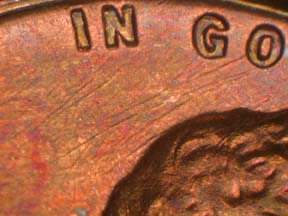 | Die Scratches under IN GOD | Die Scratches under IN GOD | Swirling Die Scratch West of RPM-100 | ||||||||||||||||||||||||