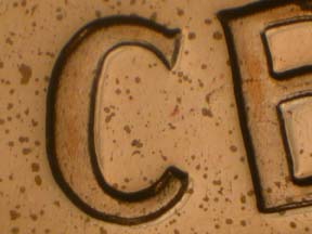 Description: Light spread on ONE CENT, designer's initials, with very light spread on RICA of AMERICA. Reported by: Timothy Wissert Comments: Proof. Obverse is ODV-023 (Large date). |