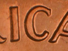 Description: Medium spread on designer's initials and CA of AMERICA with notching on all other outer rim lettering the strongest being on STATES OF. Reported by: Timothy Wissert Comments: Proof. |
