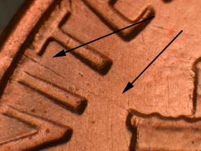 | Thin Letters of ONE | Thin Letters of CENT | Die Scratches on Reverse | ||||||||||||||||