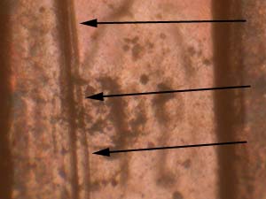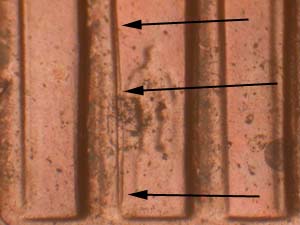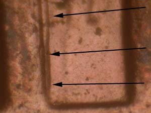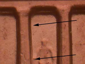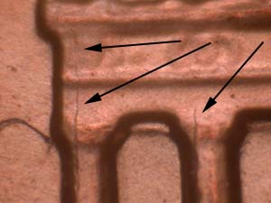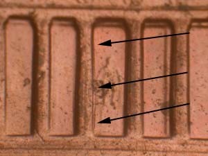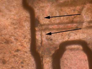 | Die Cracks from Column # 1 and # 2 | Die Crack and Die Chip on Forehead | Magnified View of Pedestal | ||||||||||||||||||||