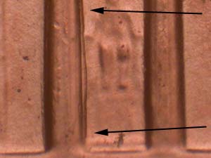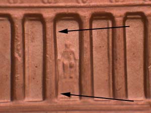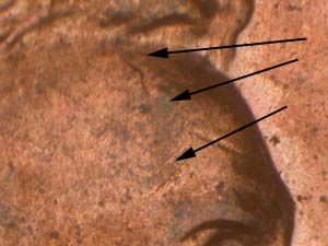 | Die Cracks from Column # 1 and # 2 | No Die Crack on Forehead | Magnified View of Lower Lincoln Statue | ||||||||||||||||||||