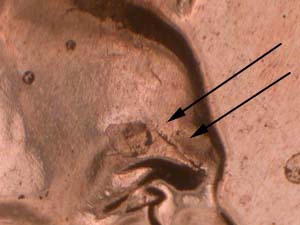 | Die Gouge below R of PLURIBUS | Die Crack through JL | |||||||||||||||||||||||||||||