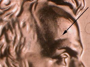 | Light Die Cracks in Hair | Light Die Crack on Forehead | Die Chip in 2 of Date | ||||||||||||||||||||