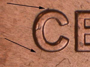 | Die Crack from O of ONE | Die Cracks from C of CENT | Two Die Chips on Shoulder | ||||||||||||||||||||