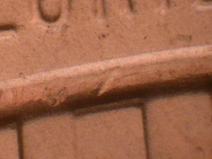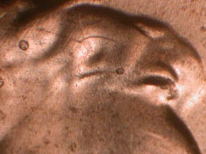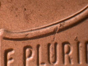 | Die Crack Southwest from O of ONE | Date and Mintmark | Die Crack in upper Hair | ||||||||||||||||