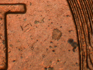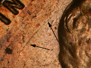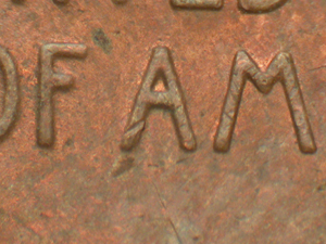 | Die Crack Northwest from E of ONE | No Die Scratches through AM of AMERICA | |||||||||||||||||||||||||