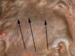 | Die Crack from 9 to Mintmark | Die Cracks in Hair | Die Crack on Forehead | ||||||||||||||||||||||||||||