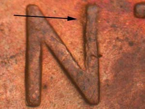 | No Die Gouge through O of GOD | Die Crack in Hair | Die Clash through N of CENT | ||||||||||||||||||||||||