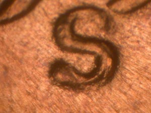 | Die Gouge through O of GOD | Die Scratches through C of CENT | Die Scratches through T of CENT | ||||||||||||||||||||||||