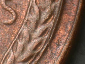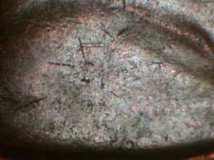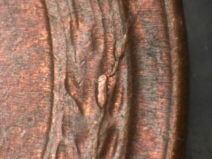 | Die Gouge West of OF | Die Crack lower Right Wheat to Rim | |||||||||||||||||||||||||||||||||