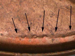 | Die Cracks in Hair | Die Crack on Forehead | Die Crack over V. D. B. | ||||||||||||||||||||