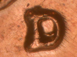 | Die Chip on Lower E of UNITED | Die Chip in C of AMERICA | |||||||||||||||||||||