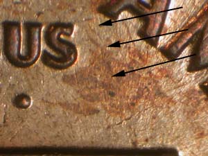 | Light Die Crack on Forehead | Die Scratch South from N of UNITED | Die Scratch South from F of OF | ||||||||||||||||||||