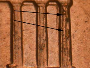 | Die Crack on Shoulder | Die Scratches through Date | |||||||||||||||||||||||||