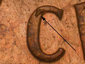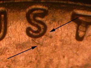 | Die Scratches through Date | Die Gouge through B of LIBERTY | Die Gouges under S of TRUST | ||||||||||||||||||||||||||||||||