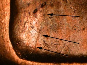 | Die Crack on Shoulder | Die Crack to R of AMERICA | |||||||||||||||||||||||||