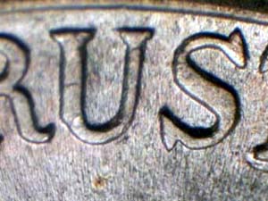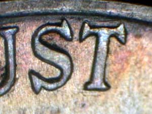 Description: Light spread on IN GOD WE. Reported by: Ed Raser Comments: Reverse is LISTED as RPM-004. |