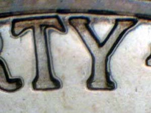 Description: Medium spread on LIBERTY, star, and date, with light spread on IN GOD WE TRUST. Reported by: Ed Fletcher Comments: Reverse is LISTED as DDR-023. |