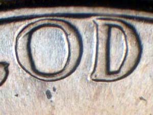 Description: Very light spread on designer's initials and IN GOD WE TRUST. Reported by: Pete Huddell Comments: SMS. Reverse is LISTED as DDR-001. |