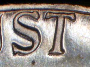 Description: Light spread on designer's initials, IN GOD, RTY of LIBERTY, star, and date. Reported by: Timothy Wissert Comments: SMS. |