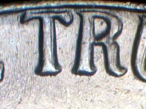 Description: Medium spread on IN GOD WE TRUST, LIBERTY, star, and date, with strongest on LIBERTY. Reported by: Andrew Prechtl Comments: |