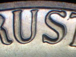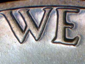 Description: Medium spread on IN GOD WE TRUST, LIBERTY, star, date and designer's initials. Reported by: L. G. Davenport Comments: |