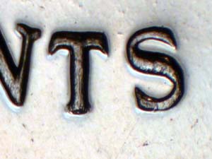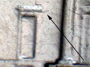 Description: Light spread and extra thickness on E PLURIBUS UNUM, UNITED STATES OF AMERICA, MO and LO of MONTICELLO, and FIVE CENTS. Reported by: Charlie Adkins Comments: Lettering appears to have rust pits. |