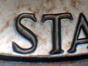 Description: Medium spread on UNITED STATES OF AMERICA decreasing from Left to Right,