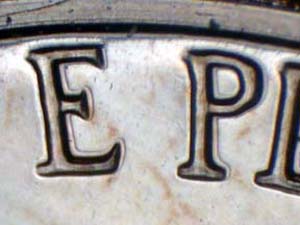 | MO of MONTICELLO | Die Gouge Dots on Rim above L of PLURIBUS | LLO of MONTICELLO | ||||||||||||||||