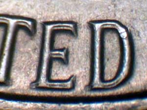 Description: Medium spread on E PLURIBUS UNUM, UNITED STATES OF AMERICA, FIVE CENTS, and MO of MONTICELLO, decreasing Left to Right. Reported by: Randy True Comments: |