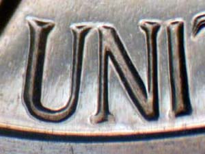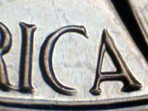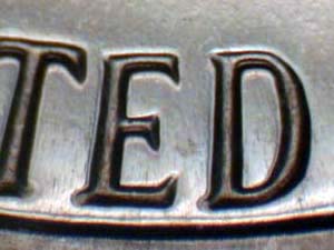Description: Medium spread on E PLURIBUS UNUM and UNITED STATES OF AMERICA and building edges. Reported by: James Wiles Comments: |
