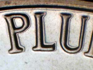 Description: Light spread on E PLURIBUS UNUM and MO of MONTICELLO with light
