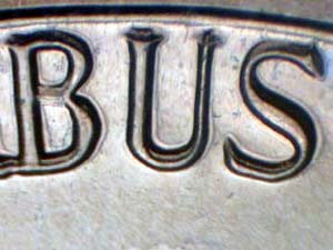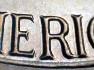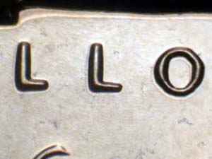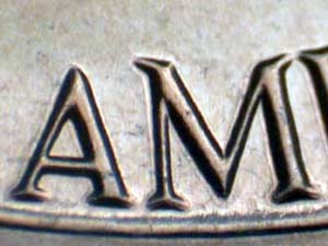 Description: Medium spread on E PLURIBUS UNUM and light spread on UNITED STATES OF AMERICA decreasing from Left to Right. Reported by: James Wiles Comments: |