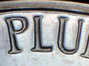 Description: Medium spread on E PLURIBUS UNUM and STATES OF AMERICA increasing Left to Right, Right building edge, last O of MONTICELLO, and S of CENTS. Reported by: James Wiles Comments: |