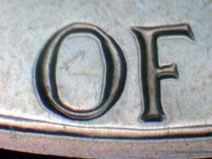 Description: Light spread on E PLURIBUS UNUM and STATES OF AMERICA increasing from Left to Right. Reported by: James Wiles Comments: |