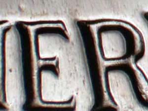 Description: Medium double and light triple spread on E PLURIBUS UNUM, with light spread on