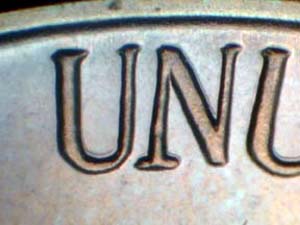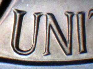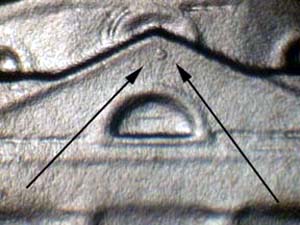 from Left to Right with light spread on FIVE CENTS, last O of MONTICELLO, and UNUM. Reported by: James Wiles Comments: |